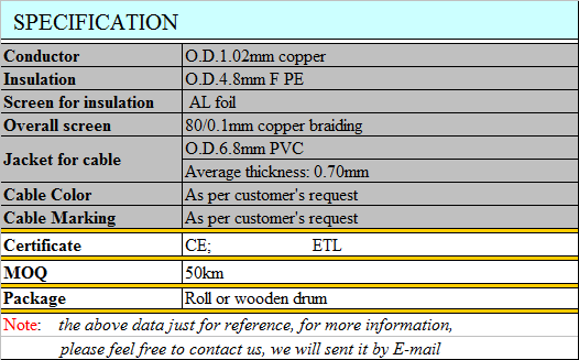RG59, copper conductor, PVC jacket