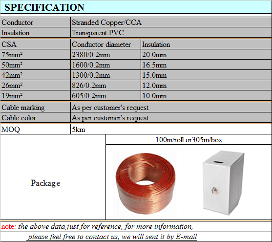 Specification: 1805/0.16mm CCA (25%) + 17.0mm PVC jacket